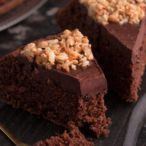 Ingredienti per 8 persone: 120 g di burro, 200 g di cioccolato fondente, 1 bicchierino di cognac, 90 g di farina, 1 cucchiaino di miele, 50 g di nocciole, purè di 4 albicocche, 4 uova, 1 stecca di vaniglia, 1 decilitro di panna fresca, 90 g di fecola di patate, 250 g di zucchero, 1/max 2 bicchierini di maraschino;250 g di cioccolato amaro per la copertura